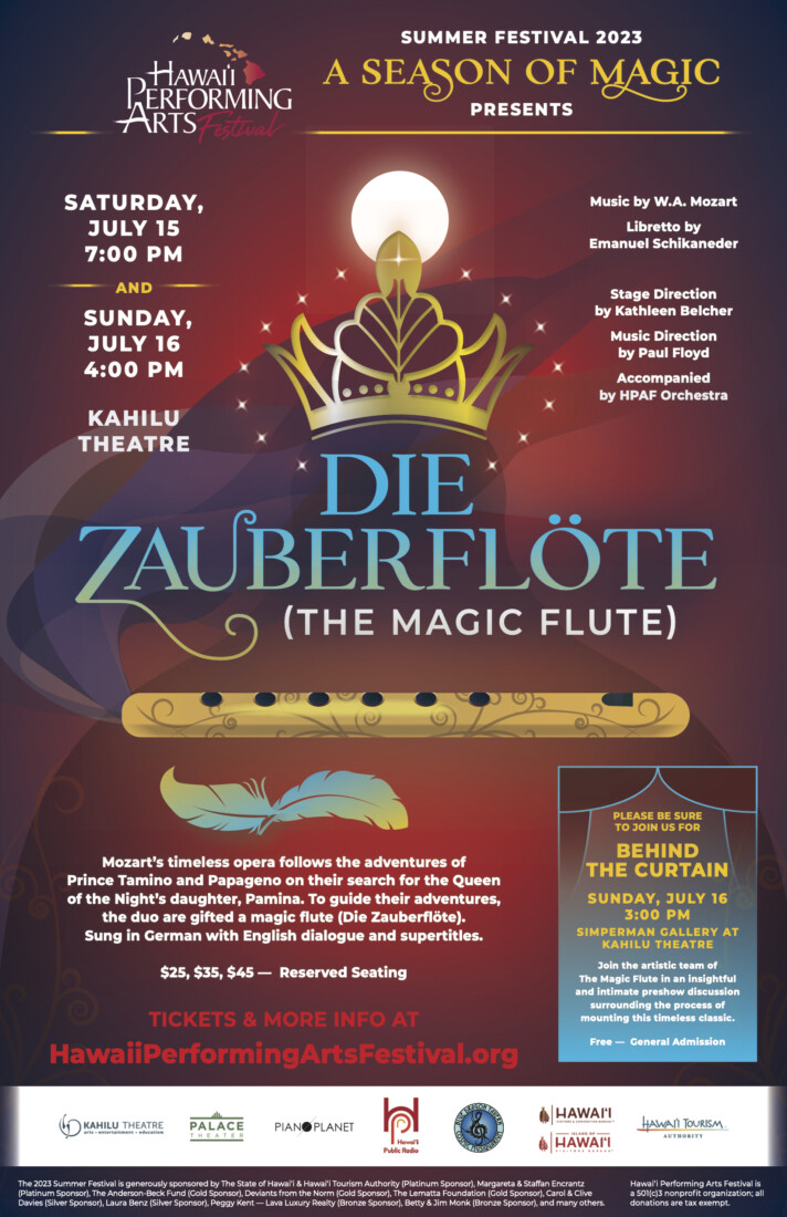 Mozart’s timeless opera follows the adventures of Prince Tamino and Papageno on their search for the Queen of the Night’s daughter, Pamina. To guide their adventures, the duo are gifted a magic flute (Die Zauberflöte). Sung in German with English dialogue and supertitles.
